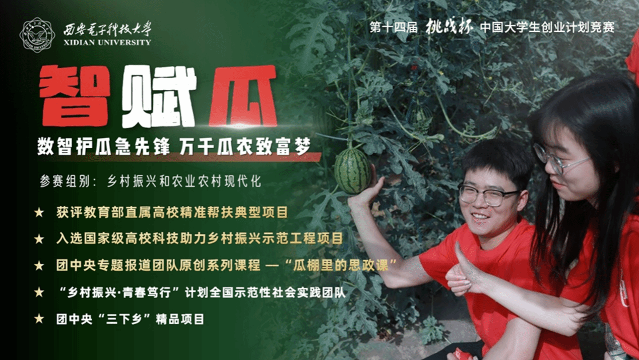 项目简介:项目团队扎根“中国西甜瓜之乡”蒲城县,针对当地西甜瓜产业品种难筛选、气候难调控、病虫难防治、产销难对称四大痛点,历经数年技术攻关与实地部署推出基于自然环境的AI选种、智慧大棚环境监测、病虫害防治预警、西甜瓜大数据整合等四大系统,首创农业科技大篷车服务新业态,并代表学校获评第八届教育部直属高校精准帮扶典型案例创新试验项目第一名,受权威媒体报道表彰57次,团队原创系列课程“瓜棚里的思政课”受团中央特别宣传。