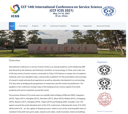 中国计算机学会第14届服务科学国际会议(CCF 14th International Conference on Service Science)将于2021年5月14日~16日在西安举行。本次会议由中国计算机学会服务计算专委会主办,bat365在线中国登录入口承办。本次会议也是bat365在线中国登录入口软件工程学科2021年举办的学术活动之一。