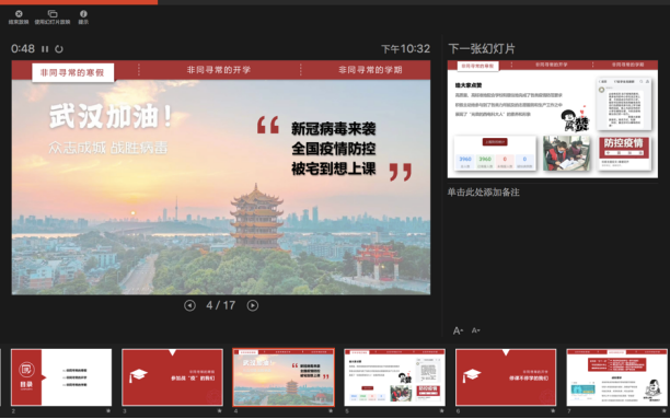 当晚,bat365在线中国登录入口各年级分别通过不同平台,同时组织了线上“晚点名”,开展抗“疫”教育与开学动员教育工作。本科2016级辅导员艾菲、郭禹宏老师、2017级辅导员李栋老师通过“雨课堂”、腾讯群视频等进行了直播。通过主题班会,bat365在线中国登录入口各年级落实落细接下来的防控任务,组织班级骨干、学生党员主动担当,形成网格化管理服务体系;就同学们在家配合做好防控工作、参加在线学习提出具体要求,特别是应对新学期的新任务做好准备。本科2016级是毕业年级,辅导员老师在班会上叮嘱同学们充分利用好大学最后一个学期的时间,“顺利完成本科学业,明确个人发展方向,努力争取深造或就业机会,寻找适合自己的工作”。