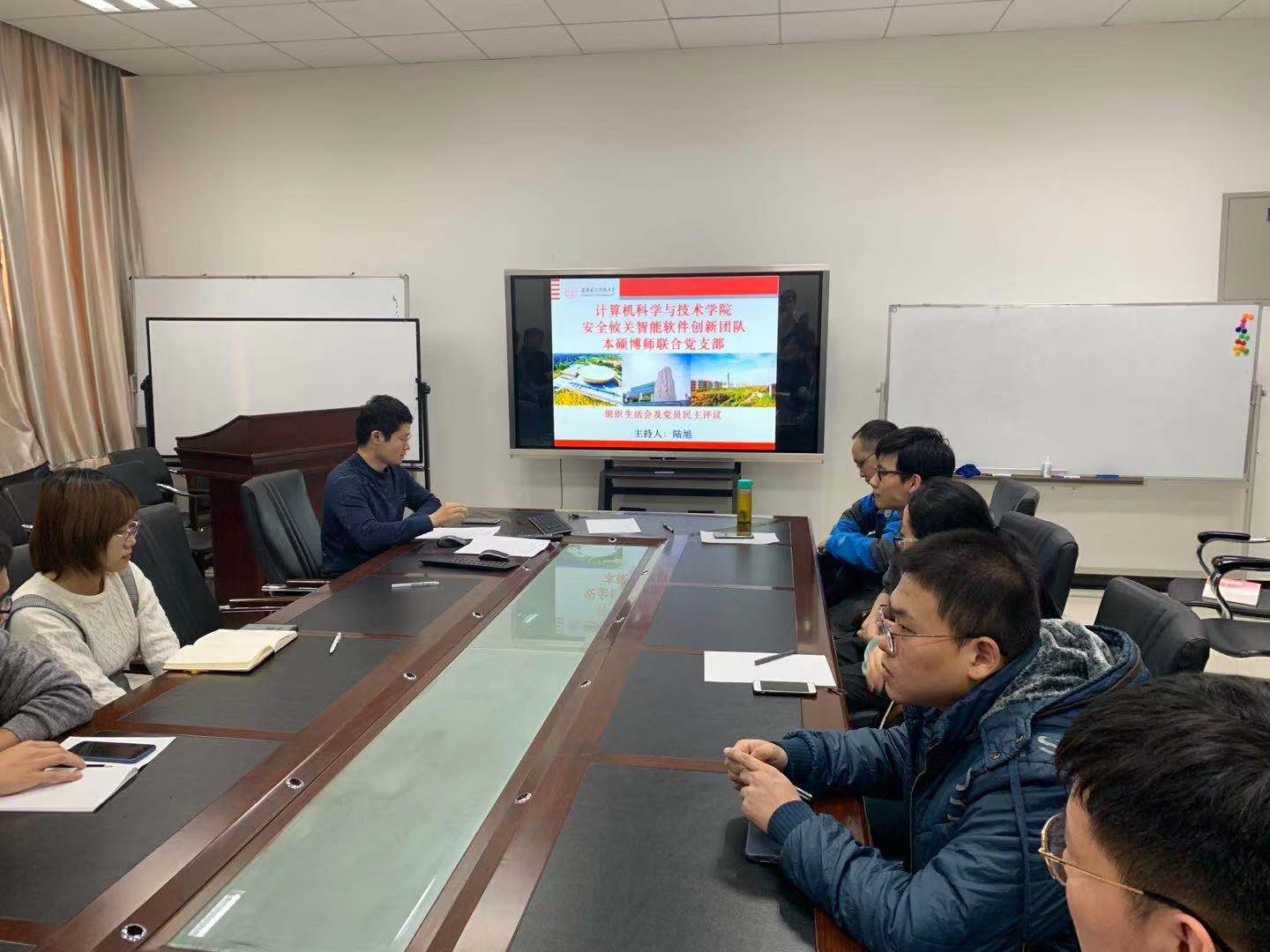(通讯员 郭佳琦)2019年12月5日下午,为贯彻校党委关于基层党支部组织生活会和开展民主评议党员工作部署,bat365在线中国登录入口安全攸关智能软件创新团队本硕博师联合党支部在主楼四区203会议室,召开支部组织生活会并开展民主评议党员。党支部书记陆旭主持了本次会议,学院纪委委员、计算机科学系主任王小兵参加会议并进行总结发言。
