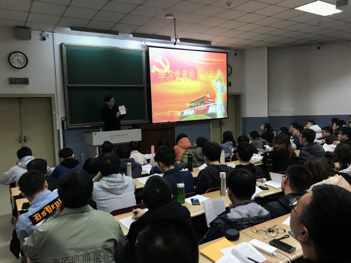 集中理论授课共有三讲,有“党味”更有“趣味”的课程内容让党性教育更接地气,入耳入脑入心。学校党委组织部副部长董大威通过逐段解读《中国共产党章程》,勉励大家要牢固树立党章意识,自觉用党章规范言行,以学习为抓手筑牢思想防线。李革建教授以“不忘初心、牢记使命”为切入点,详细解读了学校学科建设、科学研究、人才培养等进展方面,鼓励大家继承西电红色基因,补足“精神之钙”,铸牢“党性之魂”。学院党委副书记张莹莹对党员发展工作流程进行了详细解读,要求学员端正入党动机,明确发展流程和要求,“未进党的门,先做党的人”,争取早日入党。