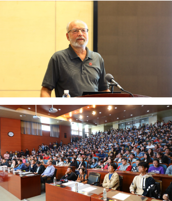 随后,Adi Shamir一行到行政楼210报告厅作了题为“The Insecurity of Machine Learning: Problems and Solutions”的学术报告。bat365在线中国登录入口执行院长崔江涛介绍了Adi Shamir的基本情况,他说,本次活动是“国际化牵引行动”的一部分,Adi Shamir是世界著名密码学专家,在密码学方面有着深厚造诣,希望与会师生抓住这次宝贵的机会积极交流。全校四百余名师生前来聆听,现场座无虚席,Adi Shamir循序渐进讲述了深度神经网络在目标识别、自动驾驶和网络安全方面的问题以及解决方法,会后和师生进行了深入的交流。