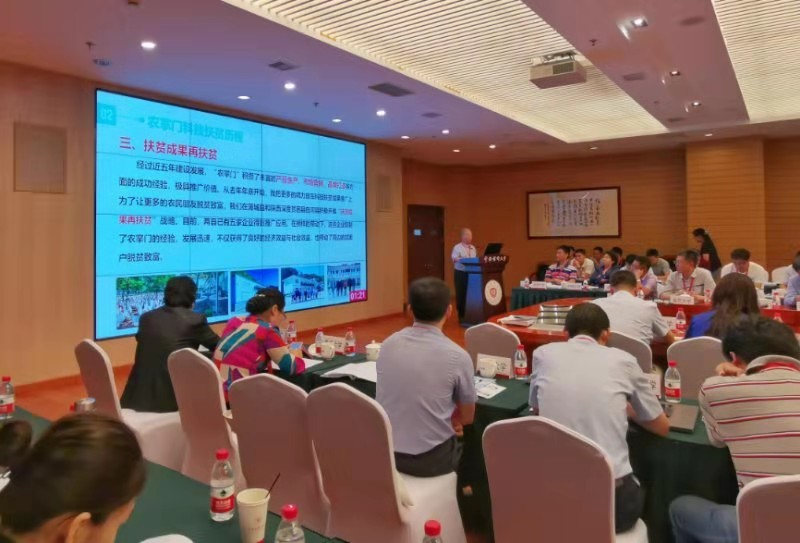 刘志镜教授年轻时曾是一名知青,如今的扶贫就好像是“第二次插队”,扶贫中他全身心帮扶的态度和细致的工作作风深深地感染了大家。刘老师今年62岁,但他身上的那股朝气,那种坚韧的毅力和力量深深打动了与会领导与代表们。据了解,刘老师汇报的PPT一直到参会的前一天凌晨四点才最终定稿,参加此次会议的五名同志一起精心准备,反复练习。虽然只睡了三个多小时,但大家都觉得很值得,还是以饱满的热情与激情,参加现场汇报。农掌门项目的介绍精彩万分,反响强烈,会中刘老师还接受了科技日报、新华日报、江苏电视台、梨视频网络等四家媒体的采访。