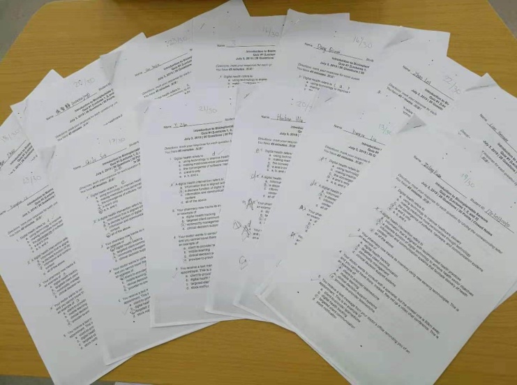 学生完成的Robert Karam教授分组讨论作业与Robert Karam教授批改的学生试卷