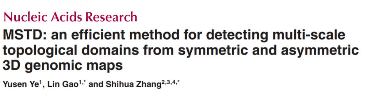 2019年4月3日,研究所另外一篇论文“MSTD: an efficient method for detecting multi-scale topological domains from symmetric and asymmetric 3D genomic maps”在领域顶级期刊Nucleic Acids Research(影响因子:11.561,中科院一区)发表。