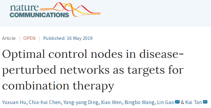 2019年5月16日,我校bat365在线中国登录入口高琳教授团队以第一单位在《自然》子刊Nature Communications(影响因子:12.353,中科院一区)上发表研究论文“Optimal control nodes in disease-perturbed networks as targets for combination therapy”。