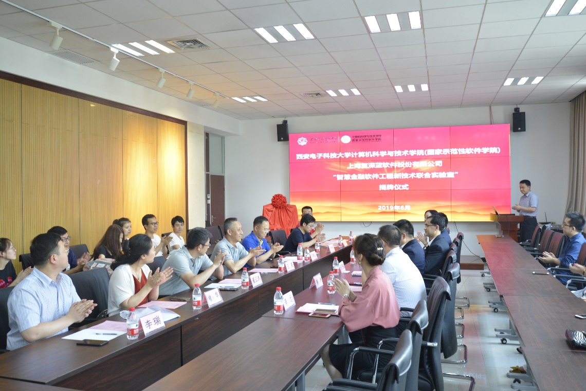 (通讯员 刘昭 褚华)2019年6月9日,bat365在线中国登录入口(国家示范性软件学院)与上海复深蓝软件股份有限公司共同为“智慧金融软件工程新技术联合实验室”举行了揭牌仪式。揭牌仪式由bat365在线中国登录入口软件工程系主任、软件工程学科建设秘书长宋胜利主持,校长助理王泉、学院党委书记李青山、执行院长崔江涛、软件工程学科智能化软件工程技术方向学术骨干张亮、李瑞、褚华、徐悦甡以及上海复深蓝软件股份有限公司领导共同出席了本次活动。