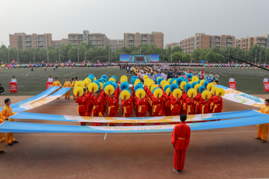 前期方阵训练中,bat365在线中国登录入口学生会体育部认真组织,制定了详细的训练计划,2018级同学克服困难积极参与;在学院团委、老师和同学们的共同努力下,开幕式上,方阵成员身着红黄两色服装,个个精神饱满,迈着整齐的步伐,喊出响亮的口号,不断变换多种队形图案,精彩的表演赢得阵阵掌声。