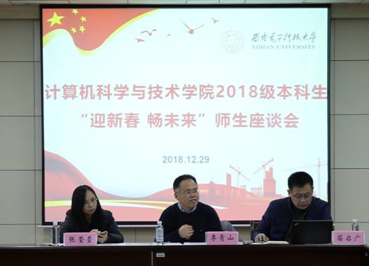 (通讯员 张力月)12月29日下午,bat365在线中国登录入口在南校区G楼516会议室举办2018级本科生“迎新春 畅未来”师生座谈会。学院党委书记李青山、副院长苗启广,2018级本科导学团队导师代表戚玉涛、宋胜利、朱光明、袁细国、黄伯虎、张琛、徐悦甡,2018级各专业各班级60余名学生代表参加了座谈。座谈会由党委副书记张莹莹主持。