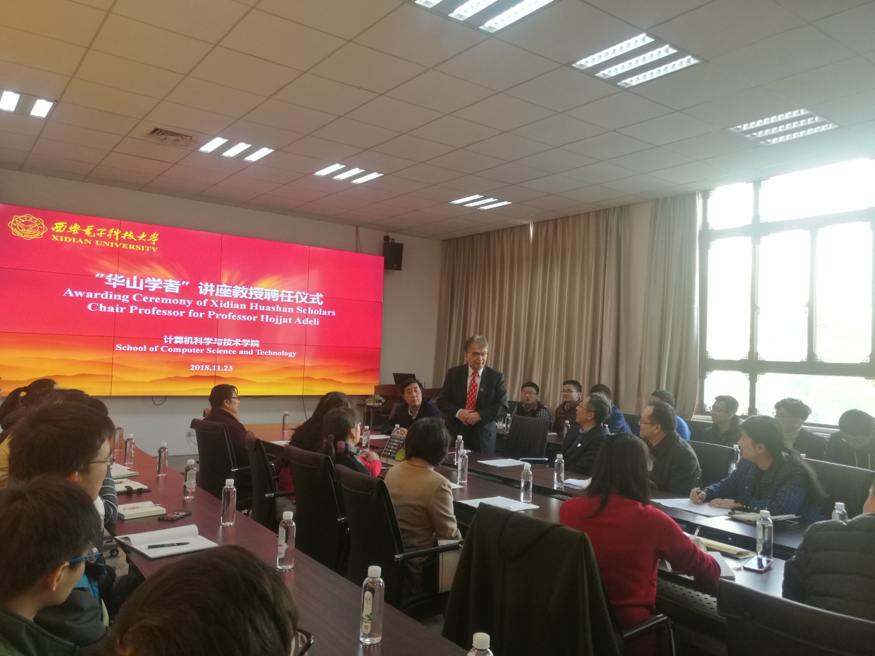 11月23日下午,Hojjat Adeli教授的“华山学者”讲座教授聘任仪式在北校区主楼Ⅱ区319报告厅举行。bat365在线中国登录入口副校长李建东教授出席聘任仪式,国际合作与交流部国际教育处副处长孔难难、bat365在线中国登录入口副院长赵韩强、王宇平教授等学院师生代表参加了聘任仪式。聘任仪式由bat365在线中国登录入口副院长赵韩强主持。