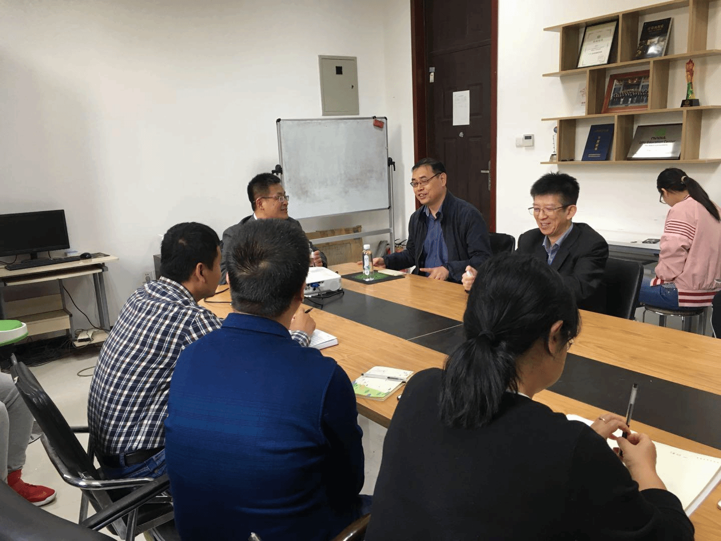 下午2:30,李海洲教授和董明会博士在主楼IV区225会议室与西安市大数据与视觉智能关键技术重点实验室的师生进行了座谈交流。在座谈会上,李教授与大家分享了学习和工作经历,并给大家耐心讲解了论文写作过程中容易犯的错误、论文写作的具体步骤以及写作经验。此外,李教授还热情地解答了师生提出的各种疑问,使师生们受益匪浅。