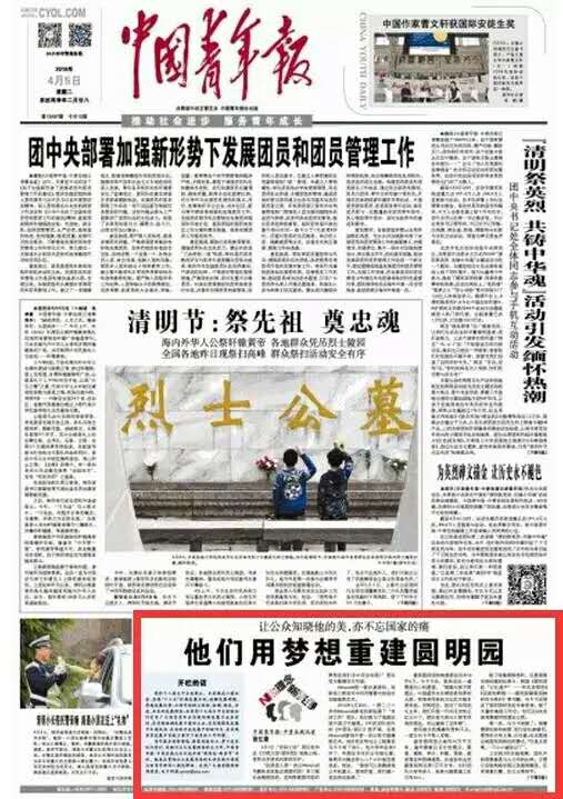 圆明园》,受到《中国青年报》的头版关注。这是国人第一次以