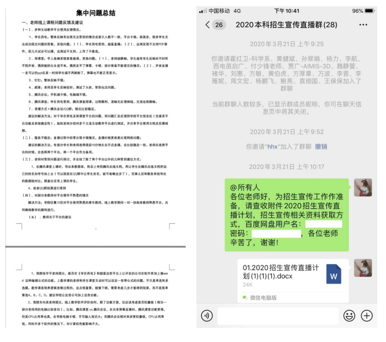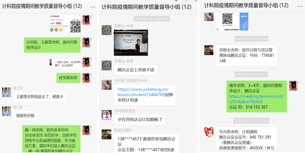 为确保教学质量,全面了解线上教学情况,学院成立了以8位院领导和办公室主任为主体的线上教学督导组,4位教务干事每人负责对接2个研究所,针对8个研究所的bat365在线中国登录入口全体老师形成“网格化”督导模式。马继红老师负责软件工程研究所和智能软件与系统新技术研究所,上课前,马老师会把所有课程的链接、二维码、课堂暗号等收集到,然后发到督导群。通过辅导员、线上督导组、教务干事等渠道,随时收集学生对教学质量的反馈意见,发现问题,解决问题,做好线上教学的自我监控和学生的舆论引导工作。在全体教务老师的共同努力下,线上教学至今,未发生一起教学事故。