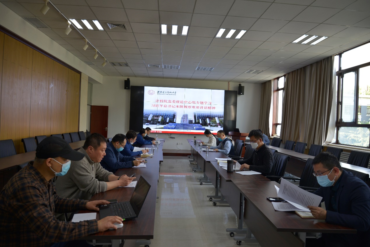 大家纷纷表示,习近平总书记在疫情特殊时期来到陕西,充分体现了对陕西的厚爱与牵挂。学院党委副书记张莹莹结合疫情期间学生就业实际谈到,学院通过研究出台工作方案、开展线上就业指导和专场空中招聘会等落实“稳就业”。第一批学生将于明天返校,学院上下同心协力稳步推进相关工作。学院副院长赵韩强谈到,一是提高政治站位,落实学校各项决策部署;二是扎实推进脱贫攻坚各项工作任务落实;三是做好学生分批复学返校和疫情防控相关工作。学院副院长沈玉龙表示将加强联合支部与中小学的对接指导,身为教师要学习传承“西迁精神”,用实际行动践行爱国主义。学院副院长苗启广从“稳就业”角度谈体会,前期推出的“CCF名企面对面”系列活动响应了学生会员对当下就业形势、职业生涯规划的集中诉求,助力2020年高校毕业生就业。计算机科学系党支部书记戚玉涛、网络工程系主任权义宁和计算机工程系主任李龙海均谈到,要将学习习近平总书记重要讲话精神与推进现阶段学生复学、扶贫工作结合起来,主动谋划,积极思考,抓好工作落实。计算机科学系主任王小兵结合自身感受谈到,扶贫更要扶志扶智,转变思想观念。学院办公室主任向麟海从“把握机遇、化危为机”的角度谈到,学院要落实落细学生复学中和复学后的各项措施,积极排除隐患,同时做好研究生招生准备工作。