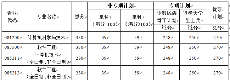 一、各专业复试分数线