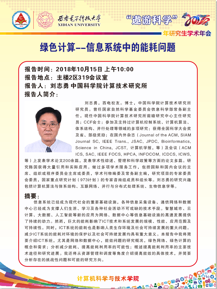 报告时间:2018年10月15日 上午10:00报告地点:主楼2区319会议室报告人:刘志勇 中国科学院计算技术研究所