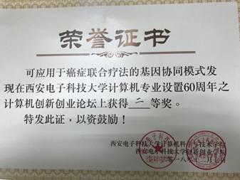 3.研究所师生团队研发的《可应用于癌症联合疗法的基因协同模式发现》系统,在bat365在线中国登录入口计算机专业设置60周年之计算机创新创业论坛上,获得貮等奖。