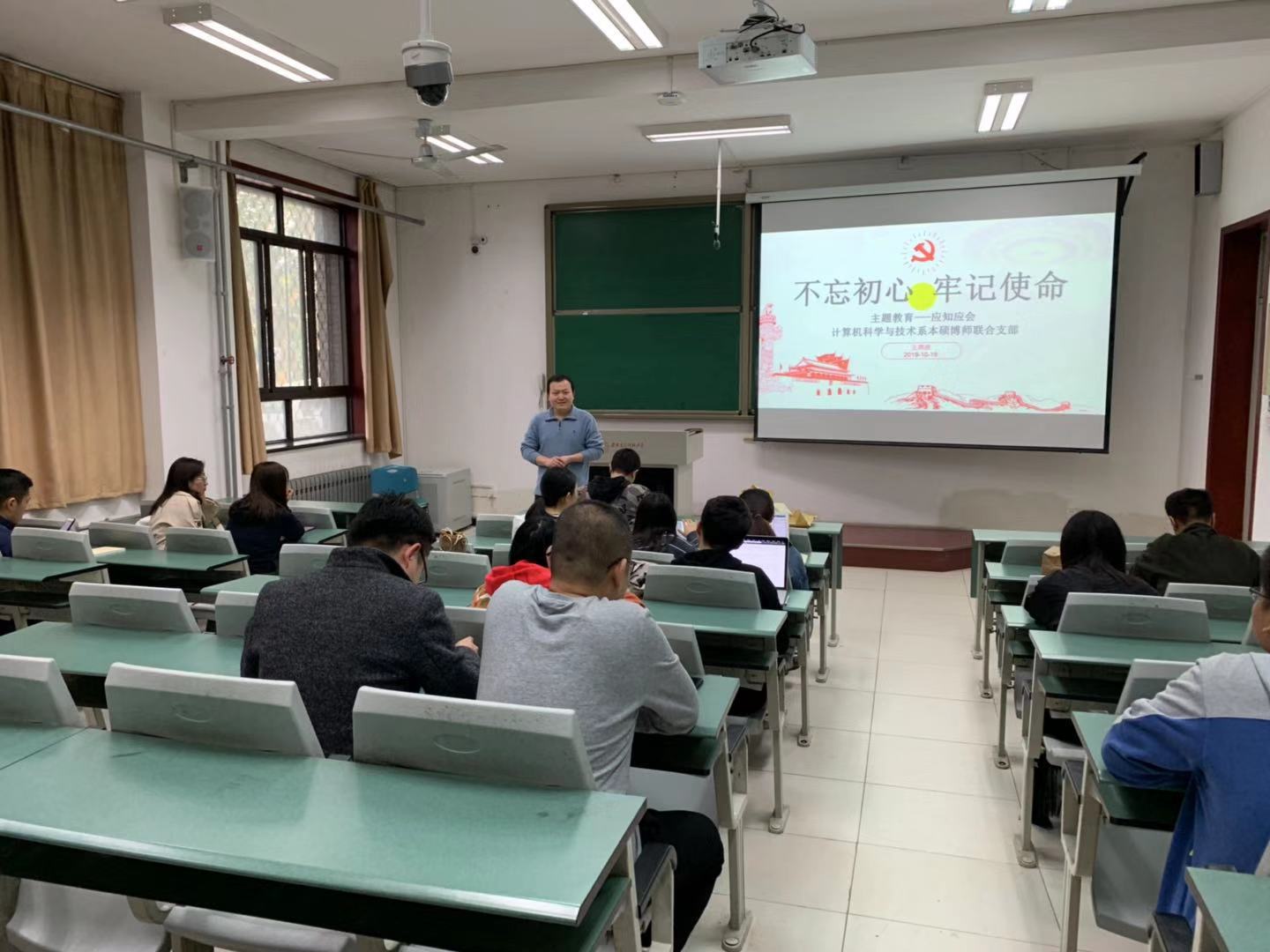 为了将“不忘初心、牢记使命”主题教育活动传递给本科生,支部副书记段然随后在南校区面向党支部本科生也开展了同样的主题教育活动,带领大家学习了“不忘初心、牢记使命”主题教育的主要内容,传达了党支部主题教育活动安排,布置制定主题教育学习计划以及学习任务。紧接着,面向本科生党员,同样进行了“庆祝新中国成立70周年知识竞赛”,回顾新中国发展历程,同学们反应积极热烈,主题教育活动取得良好实效。