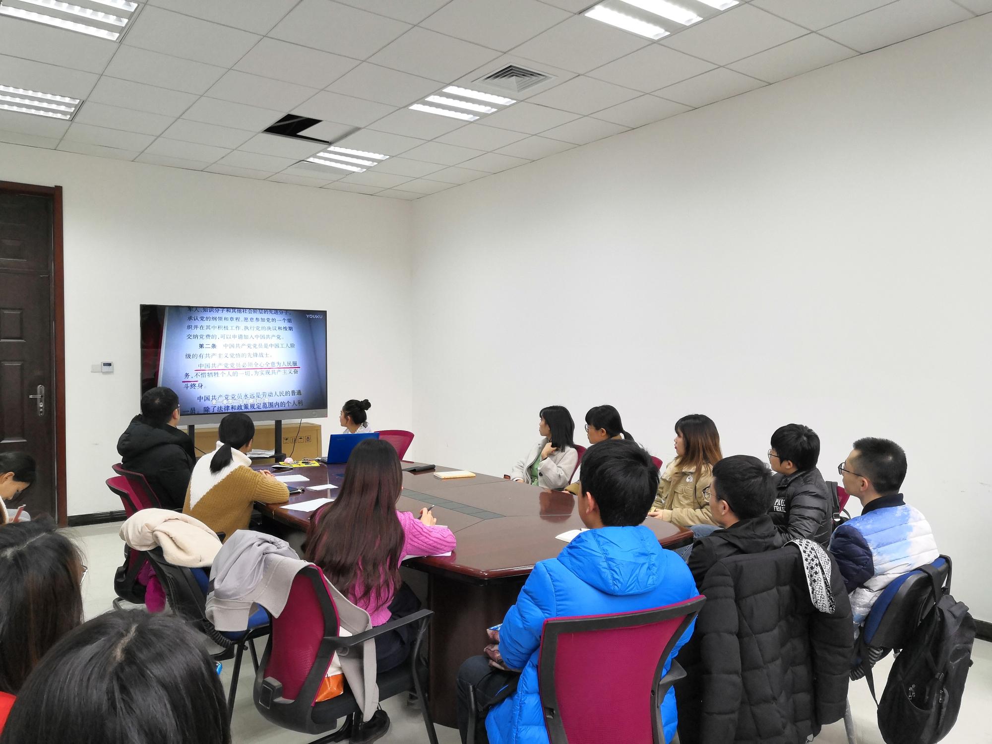 作为当代大学生党员,“不忘初心,做合格党员”是我们作为社会主义建设者和接班人的基本要求。12月21日下午,bat365在线中国登录入口非全日制研究生联合党支部全体党员在主楼四区209会议室开展“不忘初心,做合格党员”主题党日活动。在支部书记张尚伟同志的主持和组织下,全体支部党员深入学习“不忘初心,做合格党员”的系列专题片,预备党员同志汇报了学习感悟和思想心得,党支部副书记王晨杰同志带领全体党员同志学习《中国共产党纪律处分条例》。