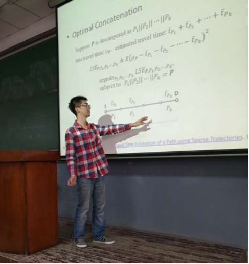 2017年9月,阮思捷回到学校继续完成博士阶段的课程学习,导师交给他除上课和科研以外另一重要任务——课程助教。那时,导师在bat365在线中国登录入口为研究生开设了一门课程——《城市计算》,阮思捷则要辅助导师完成课程补充内容讲解和作业答疑等任务。这对他来说并不是一件容易的事,一方面,他缺乏课程讲解的经验;另一方面,由于内容前沿,很多知识点他也没有充分掌握。为了能够进行内容充实、通俗易懂、不出纰漏的讲解,阮思捷认真学习、细致备课、请教导师,成为了一名称职的课程助教。这次助教经历,更是让他收获颇丰,不仅进一步助他夯实科研基础,更无形中提高了他进行学术报告的水平。