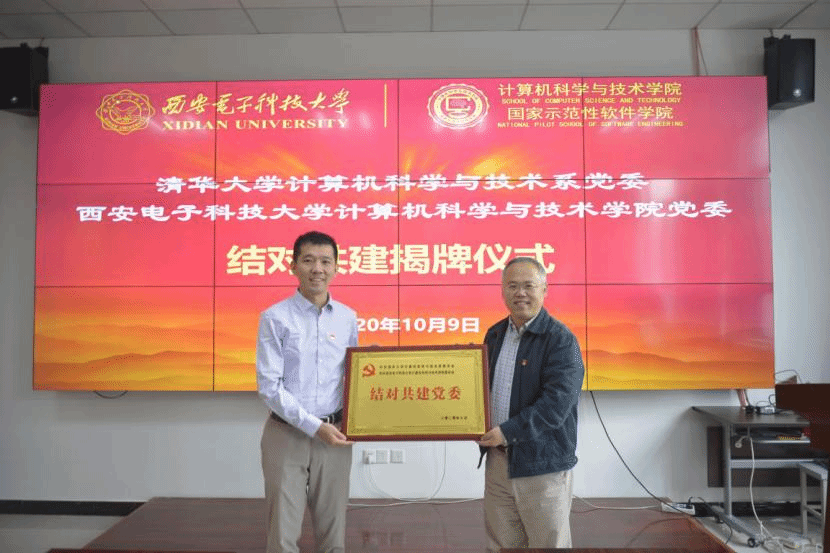 (通讯员 同榛)为切实提升基层党建水平,探索基层党建新模式,2020年10月9日上午,学院党委与第二批“全国党建工作标杆院系”培育创建单位——清华大学计算机科学与技术系党委在西电北校区主楼二区319会议室举行结对共建座谈交流会暨党委结对共建揭牌仪式。