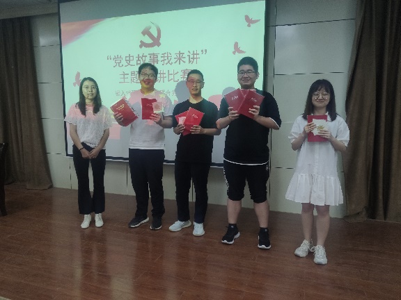 经过角逐,第六组斩获冠军,第五组荣获亚军,其他小组依次获得优秀奖,支部书记罗雪梅颁发党史学习书籍和党徽等并合照留念。