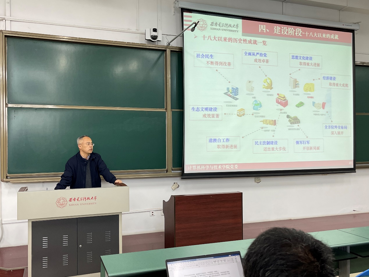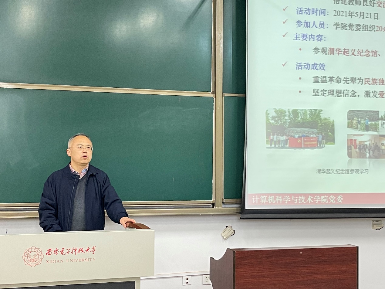 本次积极分子培训班学员绝大多数是计算机大类的同学,李青山结合在西电求学和工作的经历,介绍了“老三系”作为命根子系、刀把子系的历史背景,并对学院合并重组以来在党建、学科建设、科学研究、人才培养等方面的情况。他详细介绍了学院本硕博师联合党支部在师生传帮带、形成有传承的支部文化、党建带团建等方面的建设成效,鼓励学员们充分利用好校史资源,传承西电红色基因和“老三系”精神,以杨孟飞院士等杰出校友为榜样,坚定理想信念,树立科技报国志向,将个人理想追求融入国家和社会的发展需要。同时,不断提升思想认识和专业素质,向身边的优秀党员看齐,争取早日加入党组织。