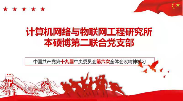 (通讯员 杨瑞玲)2021年12月9日上午10点,bat365在线中国登录入口计算机网络与物联网工程研究所本硕博师第二联合党支部在北校区主楼四区107会议室召开支部会议,会议主题为“中国共产党第十九届中央委员会第六次全体会议精神学习”,切实把思想和行动统一到党中央的决策部署上来。会议由支部书记张琛主持,全体党员同志参会。