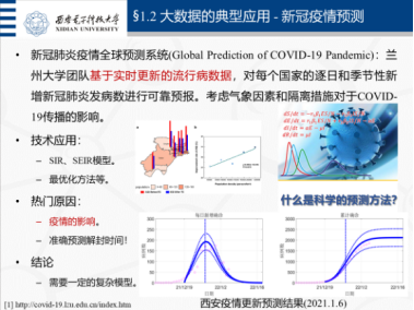 加强师生互动,创新授课方式,鲍亮老师在《大数据分析》研究生课程中,让研究生学生团队以讲座形式从大数据视角分析新冠预测和防范,引导研究生了解传染病的传播机理、范围以及科学防范措施。