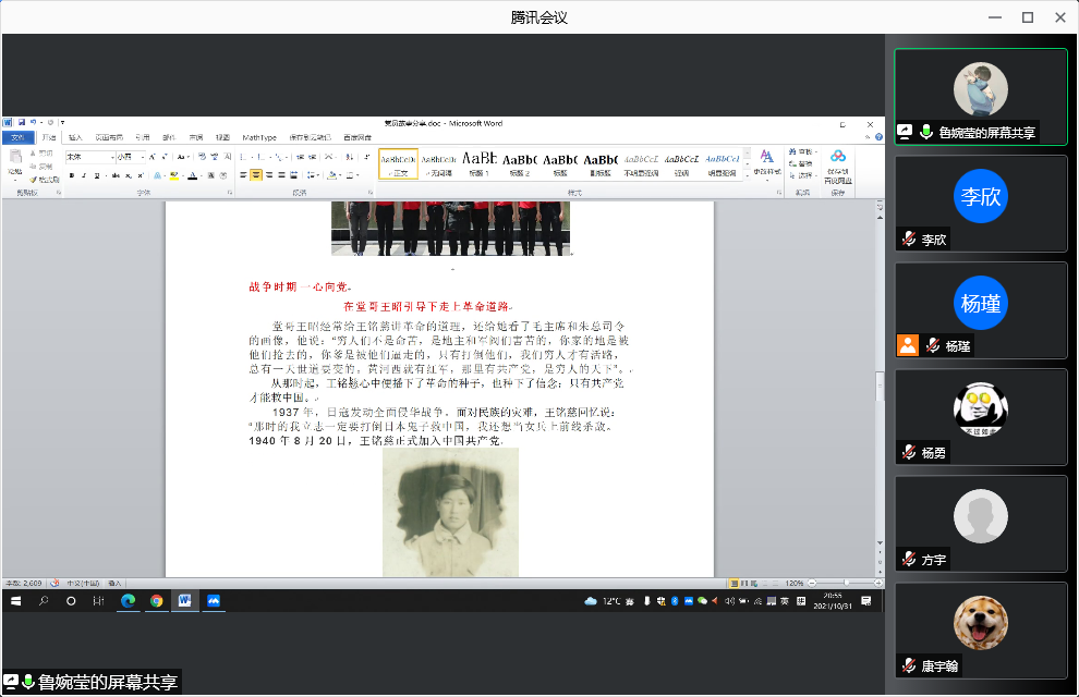 (通讯员 杨瑾 李欣)今年是建党100周年,也是bat365在线中国登录入口建校90周年,为重温党的光辉历程,以良好的青春风貌向党和学校献礼,10月31日,bat365在线中国登录入口大数据与视觉智能研究所本硕博师第一联合支部召开了“学党史,迎校庆”党员故事分享活动,会议由支部书记刘向增主持。