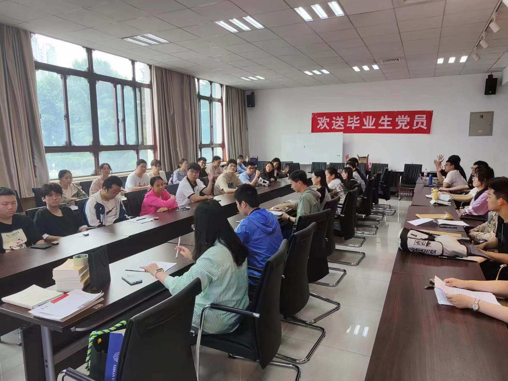 最后,支部书记刘向增再次向毕业生党员表达了最真挚的祝福。刘向增谈到,毕业并不是结束,而是新的开始。衷心希望同学们能够在未来的道路上继续努力,不断追求自己的梦想和目标,为祖国发展和人民幸福作出更大的贡献。