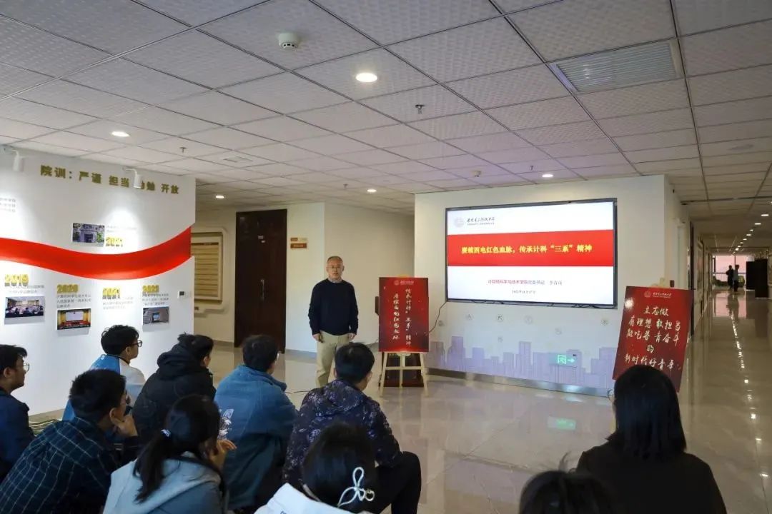 为充分发挥红色院史资源的育人导向功能,赋能时代新人培育,引导广大学子从“三系”精神中汲取力量,11月17日下午,应学工处“小马扎”流动课堂邀请,bat365在线中国登录入口党委书记李青山教授在南校区网安大楼“三系”精神文化育人空间为党史校史宣讲团代表、第78期大学生高级党校学员代表带来“赓续红色西电血脉,传承计科‘三系’精神”主题分享报告。党委学工部副部长李超、党委学工部学生党建科王朱丹参加了本次活动。