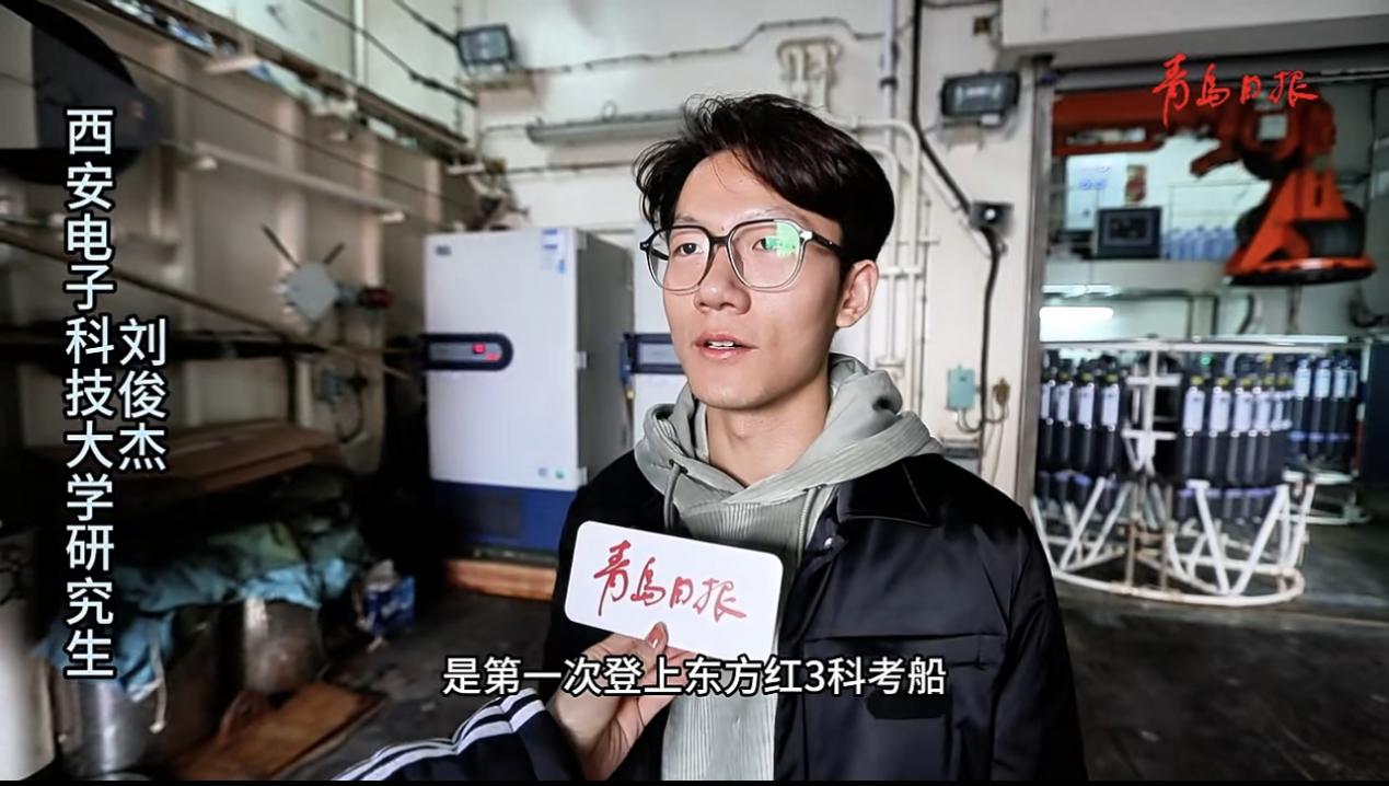 本次充满“海味”的思政课令学院师生大开眼界,深受震撼,是一堂生动的爱国主义实践课,更加坚定了师生加快建设海洋强国的蓝色信念。学院2022级研究生刘俊杰在接受青岛日报采访时说到:感谢学院给予的宝贵机会,这是我第一次登上“东方红3”科考船,学习了很多关于深海科考作业的知识,了解了中国海洋大学的历史,更加燃起了为建设海洋强国、为实现中华民族伟大复兴不懈奋斗的斗志。
