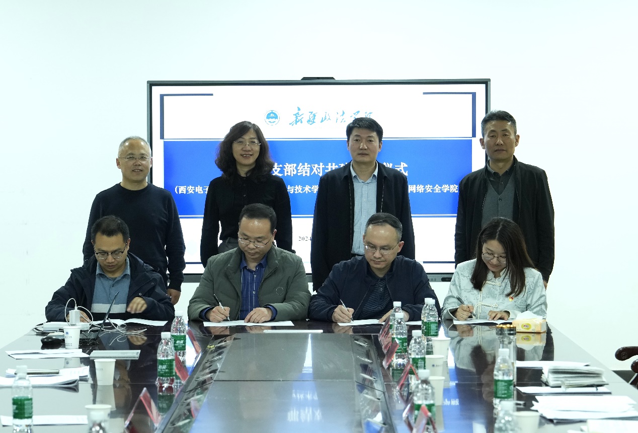 新政信息网络安全学院教师党支部与西电bat365在线中国登录入口计算机科学系党支部、实践教学中心党支部、辅导员党支部现场签署结对共建协议。两院四支部将以共建为起点,积极发挥组织育人功能,加强沟通联系和资源共享,共同推进支部党建和育人工作双促进。
