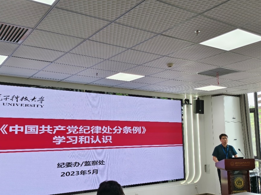 (通讯员 冯雨晴)5月20日下午,bat365在线中国登录入口在南校区网安大楼A1区223报告厅召开党委理论学习中心组(扩大)学习会议暨党纪学习教育专题辅导报告会。联系校领导朱文凯副校长到会指导。校党委巡察办主任房亮做党纪学习教育专题辅导报告。校纪委委员刘欣列席指导,学院党政班子成员、两委委员、教职工支部书记、基层系所室负责人等20余人参加会议,会议由学院党委书记李青山主持。