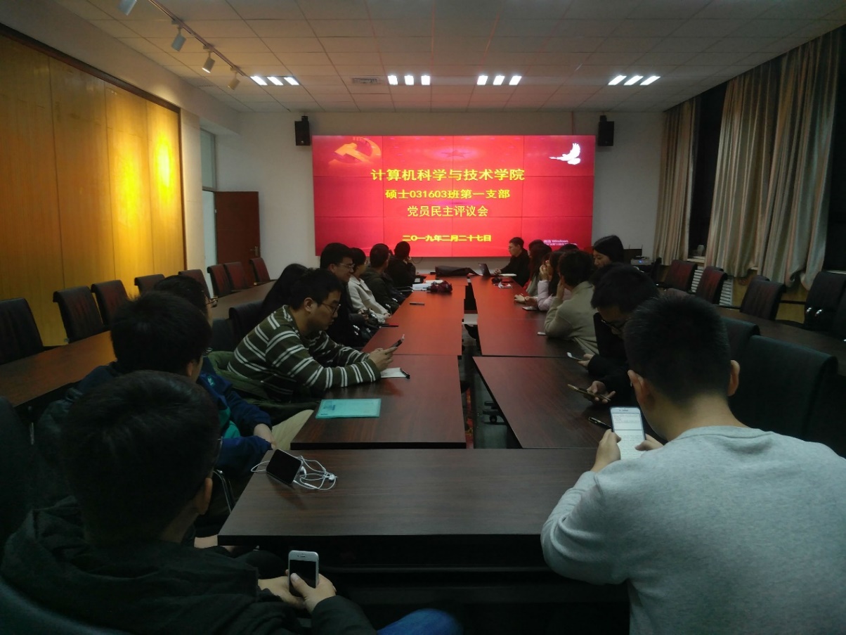 (通讯员:毛彦淇)2019年02月27日晚,bat365在线中国登录入口硕士031603班第一党支部在北校区主楼二区319会议室召开党员民主评议会,会议由党支部书记毛彦淇主持,27名党员同志参加会议,其中正式党员22名,预备党员5名。本次支部大会,首次采用学习强国APP中的扫码功能进行签到,支部全体党员均按时参会。