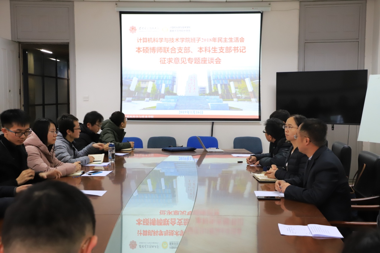 (通讯员 同榛)1月16日下午,bat365在线中国登录入口班子2018年民主生活会本硕博师联合支部、本科生支部书记征求意见座谈会在南校区G楼514会议室召开。本硕博师联合支部、本科生支部书记、大三大四年级辅导员参加了会议,会议由学院党委书记李青山同志主持。学院党委副书记张莹莹同志参加了座谈。