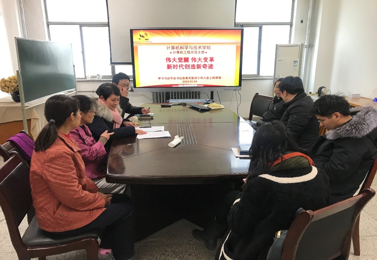 (通讯员:杨鹏飞 鱼亮)历史的发展有其规律,只要把握住历史发展大势,抓住历史变革时机,奋发有为,锐意进取,就能更好前进。12月18日上午,在庆祝改革开放40周年大会上,中共中央总书记、国家主席、中央军委主席习近平在大会上结合我国40年来改革发展辉煌历程发表重要讲话。1月4日下午,在2019新年的第一个支部主题活动日中,bat365在线中国登录入口工程系支部召开专题学习会,深入学习习近平总书记重要讲话精神,集中开展研讨交流。学习会由支委委员杨鹏飞代班主持,工程系党员同志参加。
