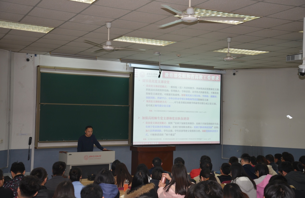 李青山首先向与会同志传达了教育部关于优化党支部设置、探索依托重大项目组、学科组、课题组、创新团队、科研平台等设置支部的有关精神,带领与会同志学习了《普通高等学校学生党建工作标准》等文件有关支部设置、党建队伍建设的要求。他详细解读了联合党支部成立工作思路和设置方案,对与会党员同志及新成立的各党支部提出工作要求和希望。