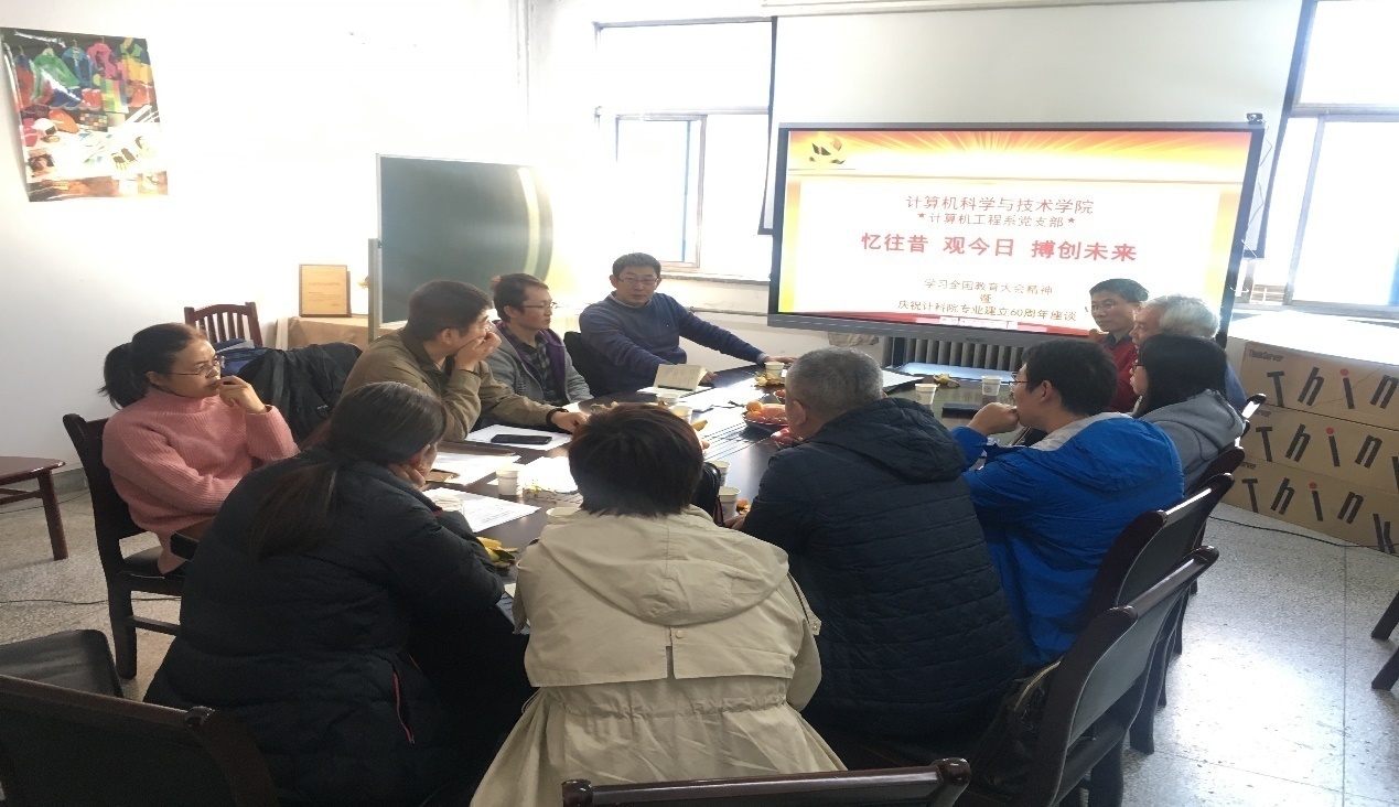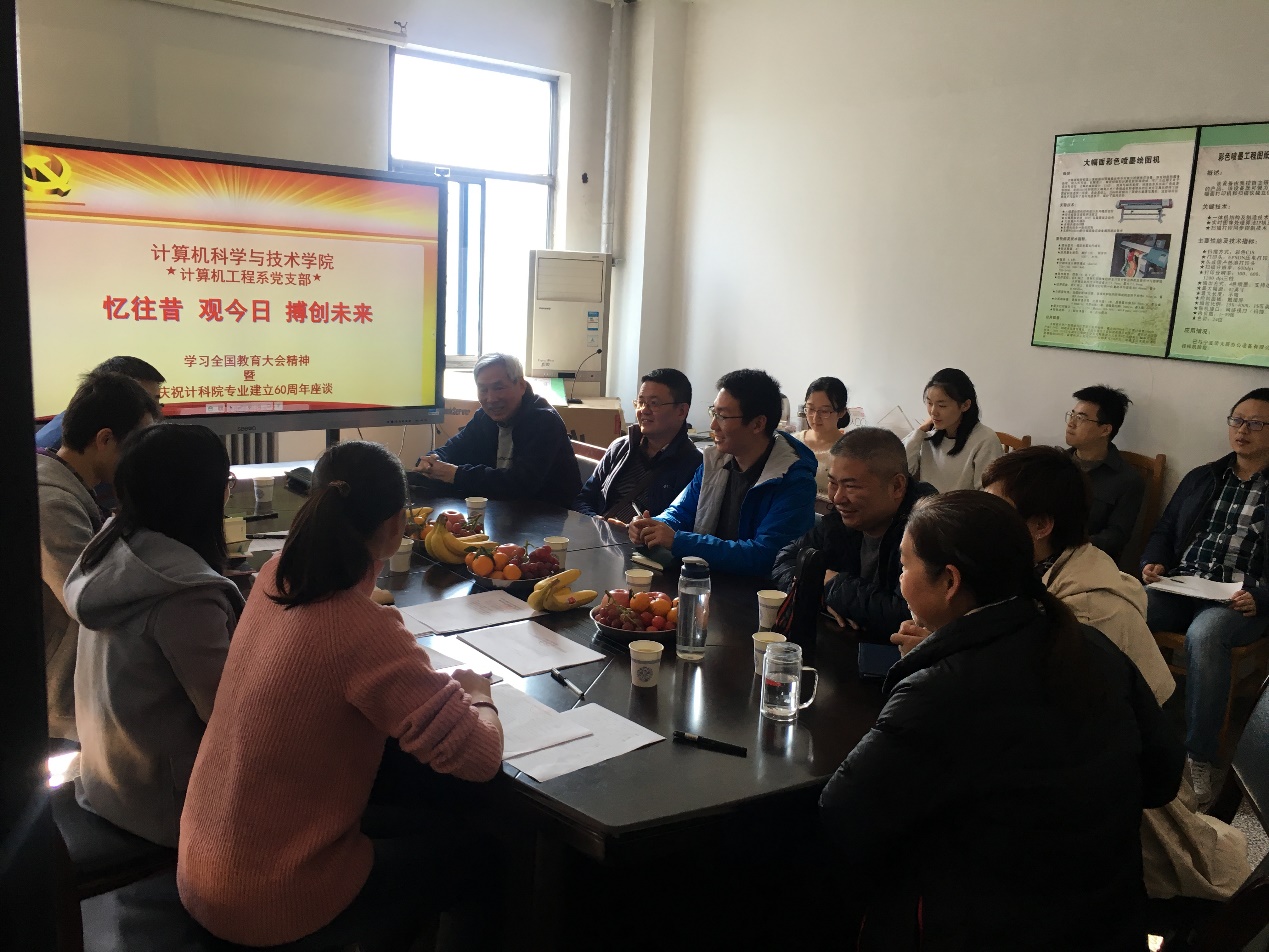 (通讯员 鱼亮 姚勇 杨鹏飞)为深入学习党的十九大报告和习近平总书记全国教育大会讲话精神,庆祝bat365在线中国登录入口建专业60周年,计算机工程系党支部于2018年11月9日下午举行以“忆往昔 观今日 搏创未来”为主题的座谈会。通过此次座谈活动,进一步加强了基层党组织思想建设和学院优秀历史传统传承。计算机工程系党支部书记鱼亮主持了此次活动,bat365在线中国登录入口执行院长崔江涛教授、计算机工程系党支部委员、多位党员和教师共同参加了此次座谈。本次座谈活动特别邀请到学院周利华教授,与大家分享学院历史、发展脉络和成就。