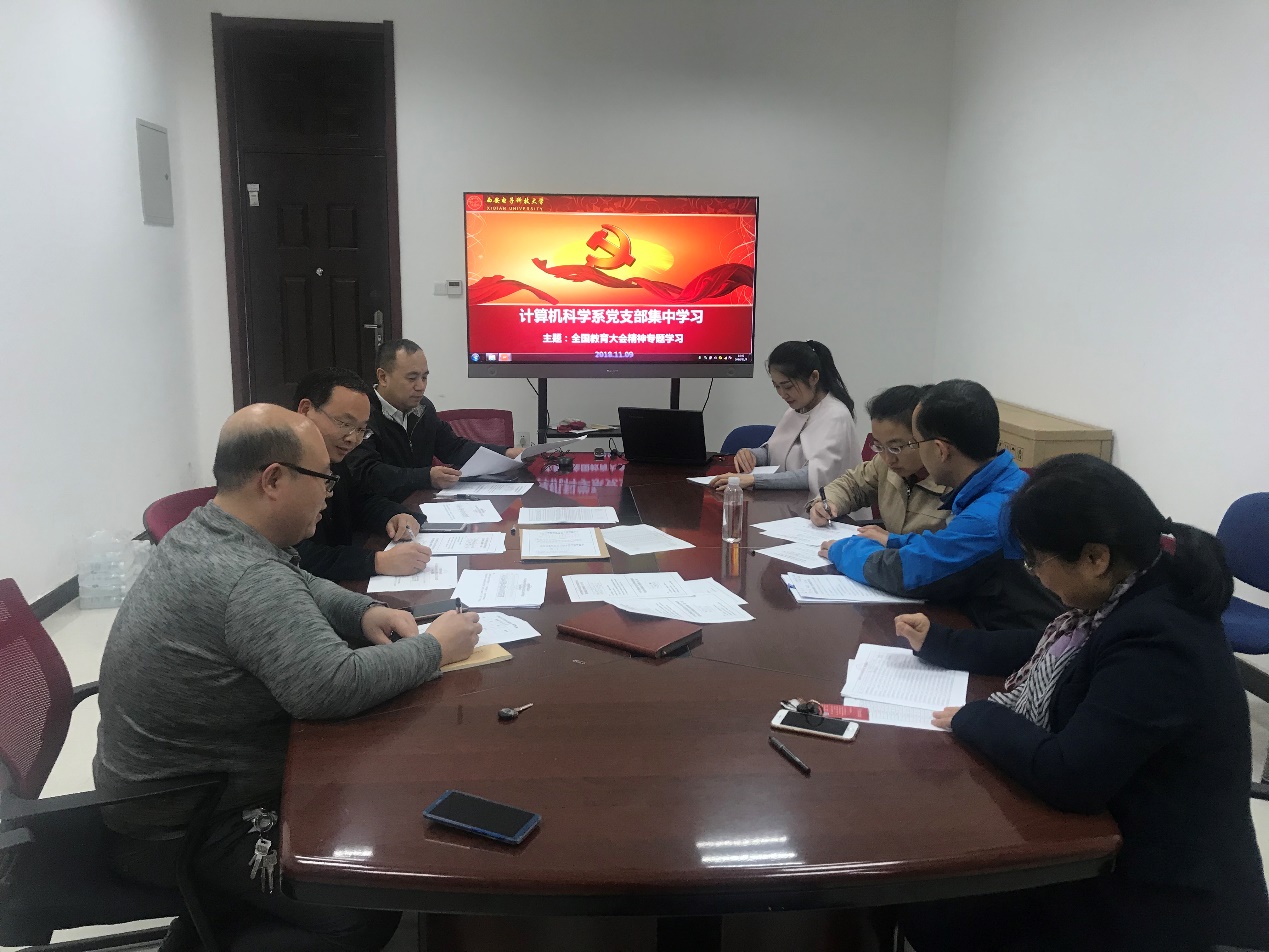 (通讯员:王晓丽)9月14日教育部党组下发《关于认真学习贯彻全国教育大学精神的通知》,要求各省、自治区、直辖市党委教育工作部门、教育厅(教委),新疆生产建设兵团教育局,有关部门(单位)教育司(局),部署各高等学校、部省合建各高等学校党委认真做好学习贯彻全国教育大会精神各项工作。为此,bat365在线中国登录入口党委积极响应、统一部署,计算机科学系党支部认真筹划安排,结合我院2018-2020年专业技术岗位聘任工作实施方案和教学改革,于11月9日下午主楼IV区209会议室开展学习全国教育大会精神主题活动。本次活动由科学系党支部副书记王小兵同志主持。