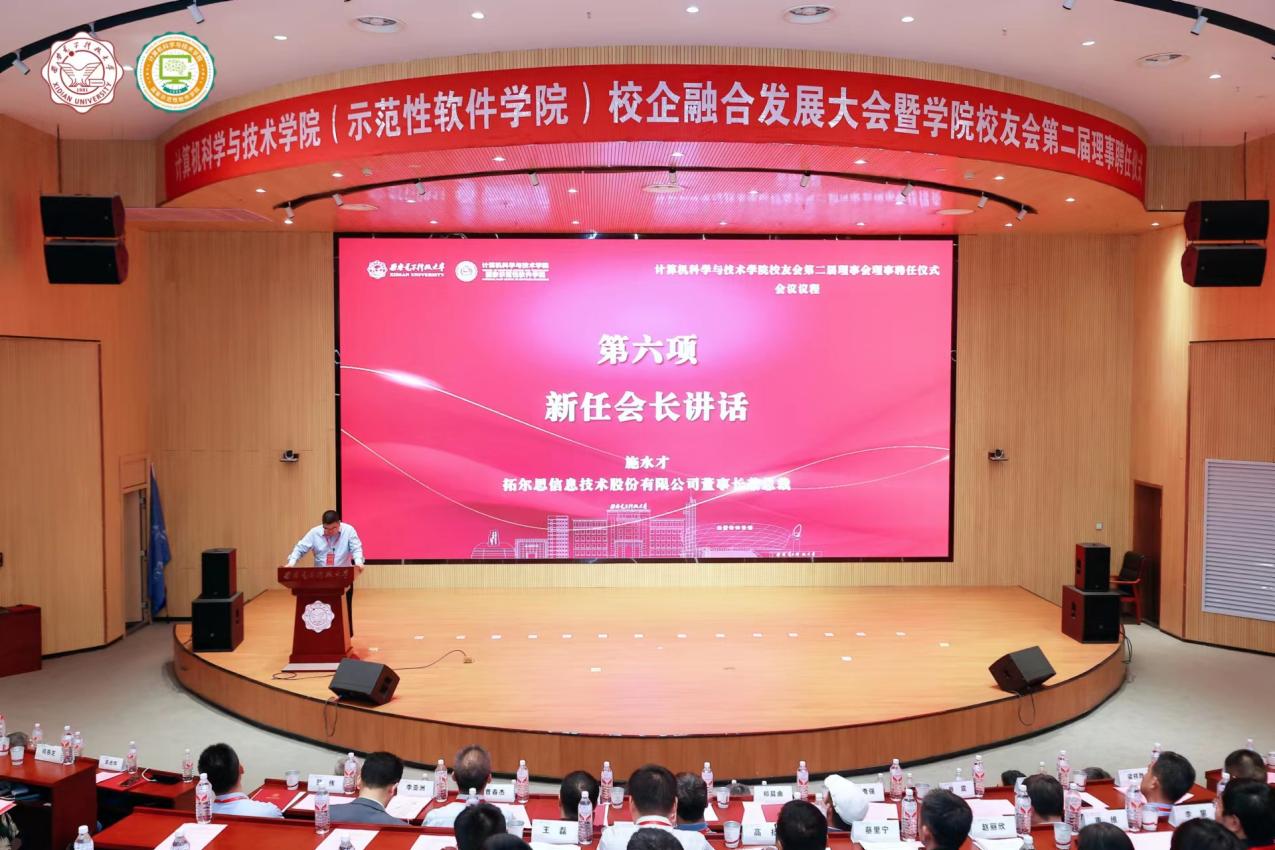 4月20日下午14点30分,学院在网安大楼B101报告厅举行校企融合发展大会暨校友会第二届理事聘任仪式,秉承“服务校友、服务学院、服务社会”宗旨,汇聚校友力量、传承“三系精神”,共同推动学院和校友事业发展。bat365在线中国登录入口副校长王泉、原副校长蒋舜浩、学院校友会第二届理事会成员、班子成员、校友代表、师生代表等参会。