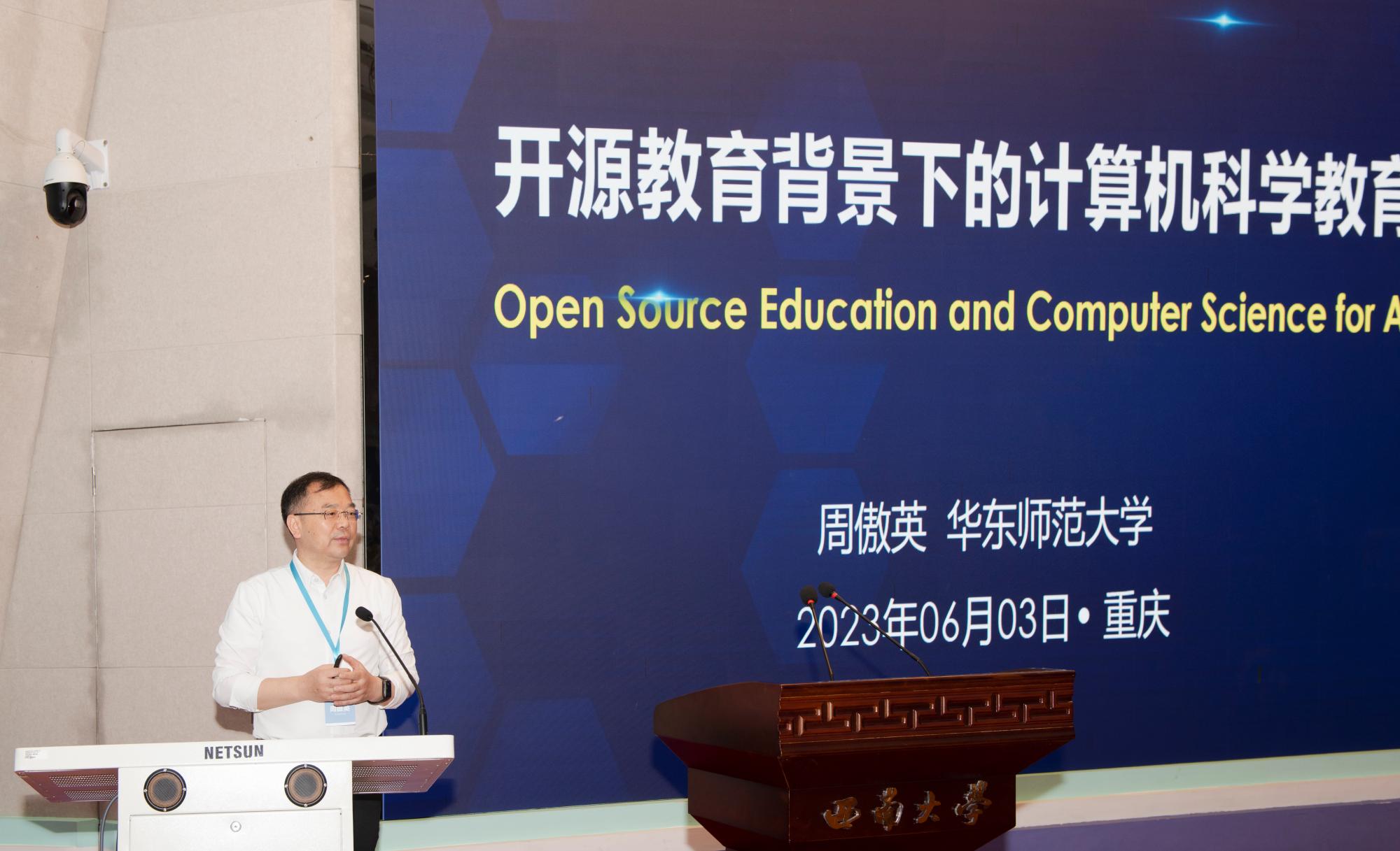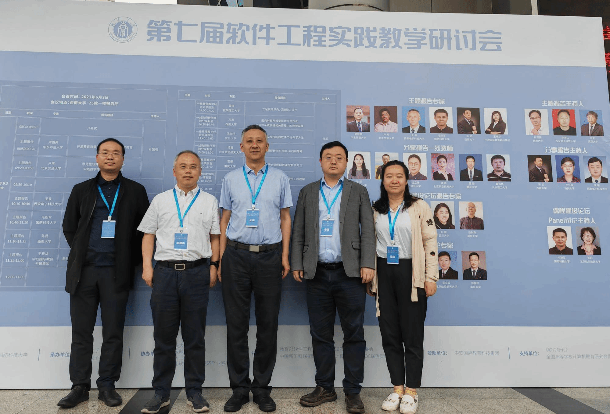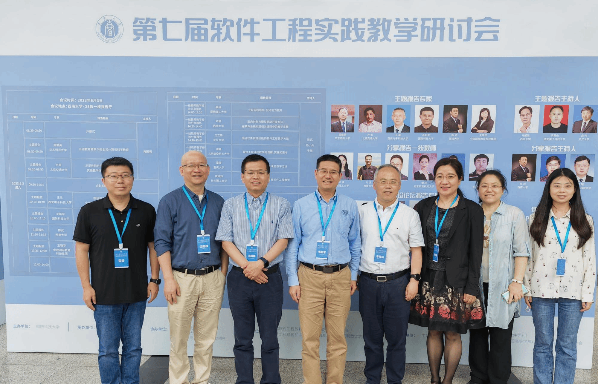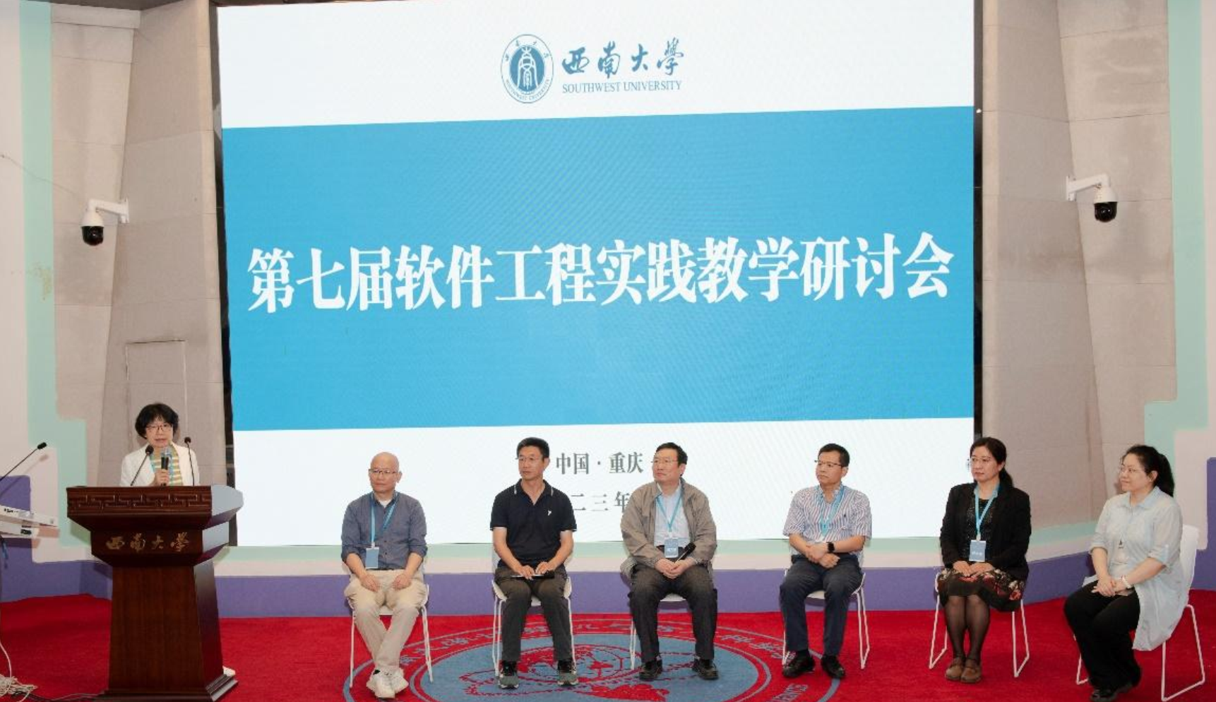 (通讯员 褚华)当前,随着软件复杂性的不断增长、智能化软件工程的快速发展以及软件系统在各行各业的持续渗透,软件工程教育教学、课程改革和人才培养面临着新的机遇和挑战。为了更好地促进软件工程教育教学方法,尤其是实践教学方法及其成果的分享,推动软件工程专业建设和教学改革,提升软件人才的培养质量和水平,2023年6月3日,第七届软件工程实践教学研讨会在西南大学成功召开。本次研讨会由国防科技大学计算机学院主办,西南大学计算机与信息科学学院和软件学院与bat365在线中国登录入口(国家示范性软件学院)联合承办。国防科技大学计算计学院毛新军教授、西南大学软件学院副院长陈武教授、bat365在线中国登录入口党委书记李青山教授担任会议联合主席。