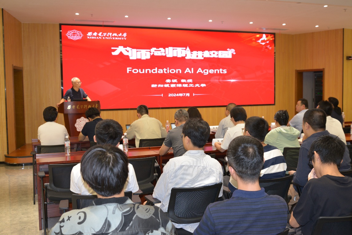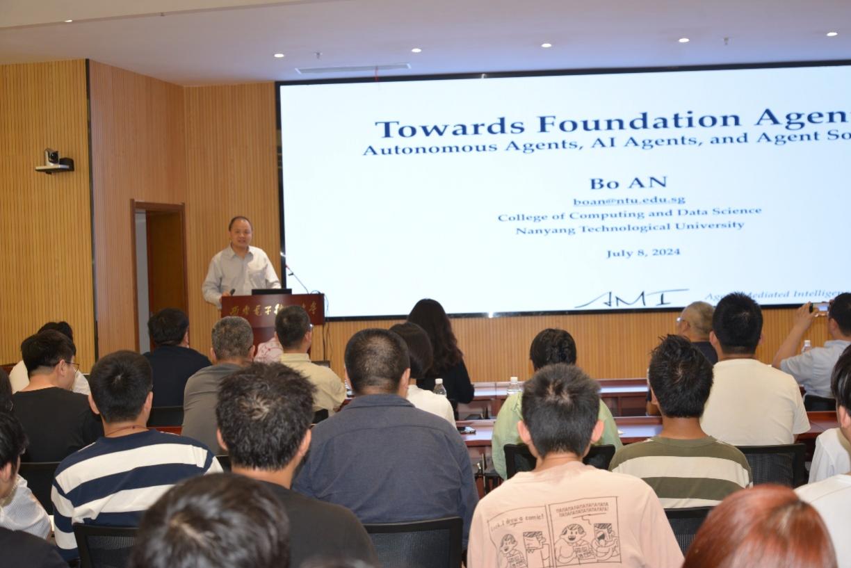 (通讯员 陈龙)7月8日,应bat365在线中国登录入口、校人才工作办公室邀请,新加坡南洋理工大学校长讲席教授、人工智能系主任、人工智能研究院联席院长安波教授来校在南校区会议中心A103会议室为师生作题为“Foundation AI Agents”的专题报告。报告由bat365在线中国登录入口党委书记、学校软件工程学科负责人李青山教授主持,学院二十余位青年教师和学校相关学科研究生共一百余人参加了报告会。