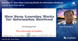 本次会议由中国科学院计算所程学旗研究员、吉林大学常毅教授和加拿大约克大学Jimmy Huang教授担任大会主席,bat365在线中国登录入口原副校长、现重庆邮电大学校长高新波教授担任LocalChair,bat365在线中国登录入口苗启广教授负责了大会与学校的相关交流协调以及大会筹备相关事宜。由于受疫情影响,大会采用线上会议模式,并面向全球直播。大会共收到论文投稿1180篇,共录取340篇。其中,长文投稿555篇,最终录用147篇,录用率约26%;短文投稿507篇,最终录用152篇,录取率约30%。除此之外共有1,516名学者注册了本次大会,ACM SIGIR 2020成为SIGIR有史以来投稿量最高、注册人数最多的一届学术盛会。